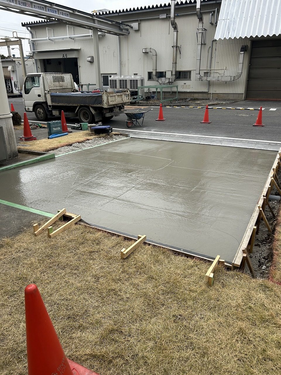 土間が完成しました。養生期間を経て上物を設置していきます。